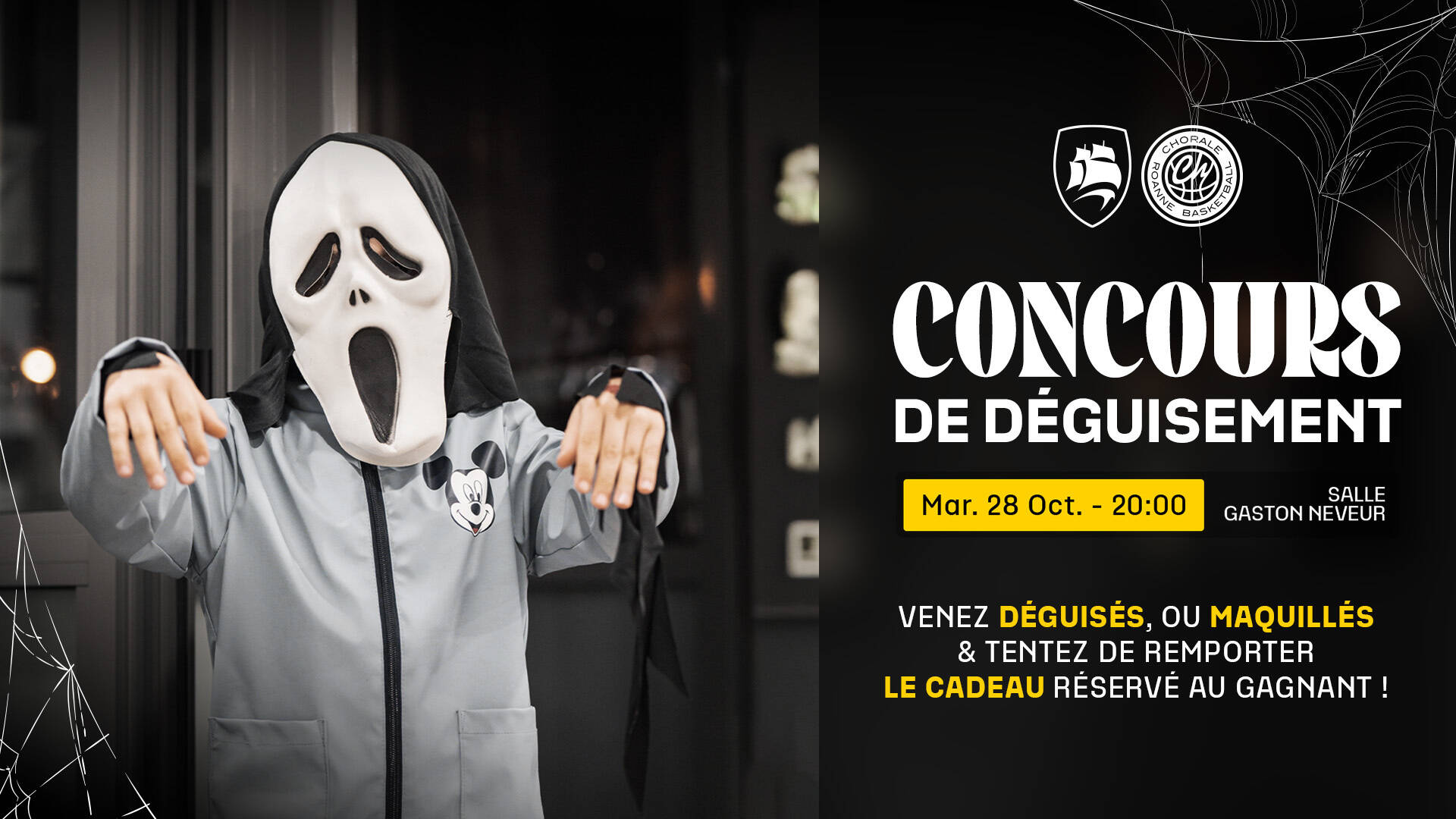 Ambiance garantie pour ce match placé sous le signe d’Halloween ! Ce soir, venez déguisés ou maquillés - ou faites-vous maquiller sur place - et tentez de remporter le concours de déguisements/maquillage à la mi-temps. Un cadeau à gagner pour le plus beau look, on compte sur vous !