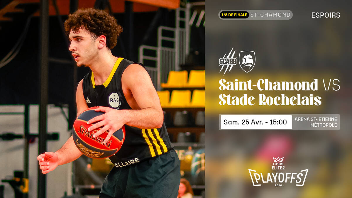 Sixièmes de leur poule avec un bilan équilibré de 9 victoires pour 9 défaites, les Rochelais avaient déjà validé leur ticket pour les playoffs ! Et les Maritimes connaissent leur adversaire des huitièmes de finale. Et ce ne sera pas une mince affaire, puisqu’ils se déplaceront, chez le leader, à Saint-Chamond. En tête de la poule A, l’avant-garde du SCABB a bouclé la deuxième phase avec un bilan solide de 13 victoires pour 5 défaites. Particulièrement performante à domicile, elle reste invaincue dans son antre depuis le 20 décembre, face à Nantes (75-78). Déterminés, les jeunes Rochelais vous donnent rendez-vous ce samedi 25 avril à 15h00 !