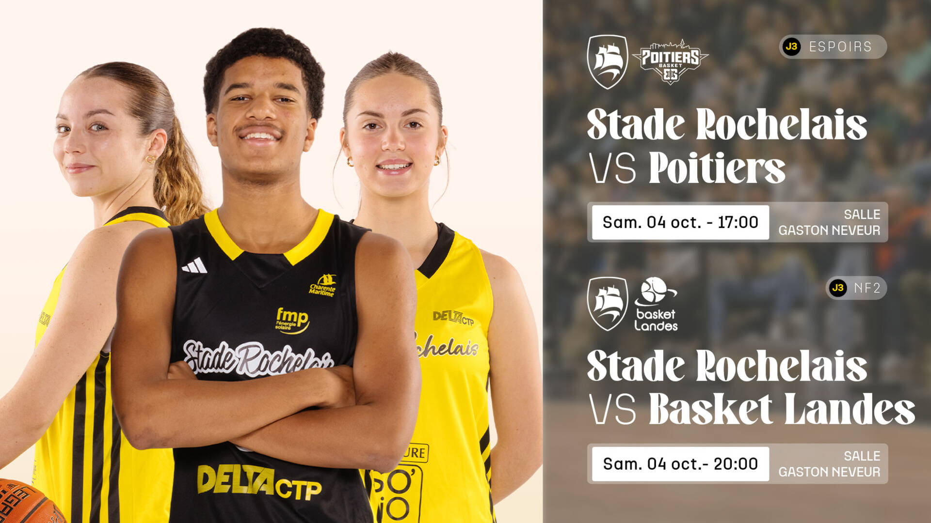Ce samedi, le parquet de Gaston Neveur sera animé ! Nos Espoirs accueilleront Poitiers à 17h00, avant que la NF2 ne défie Basket Landes à 20h00. Deux rendez-vous, pour un samedi sportif...