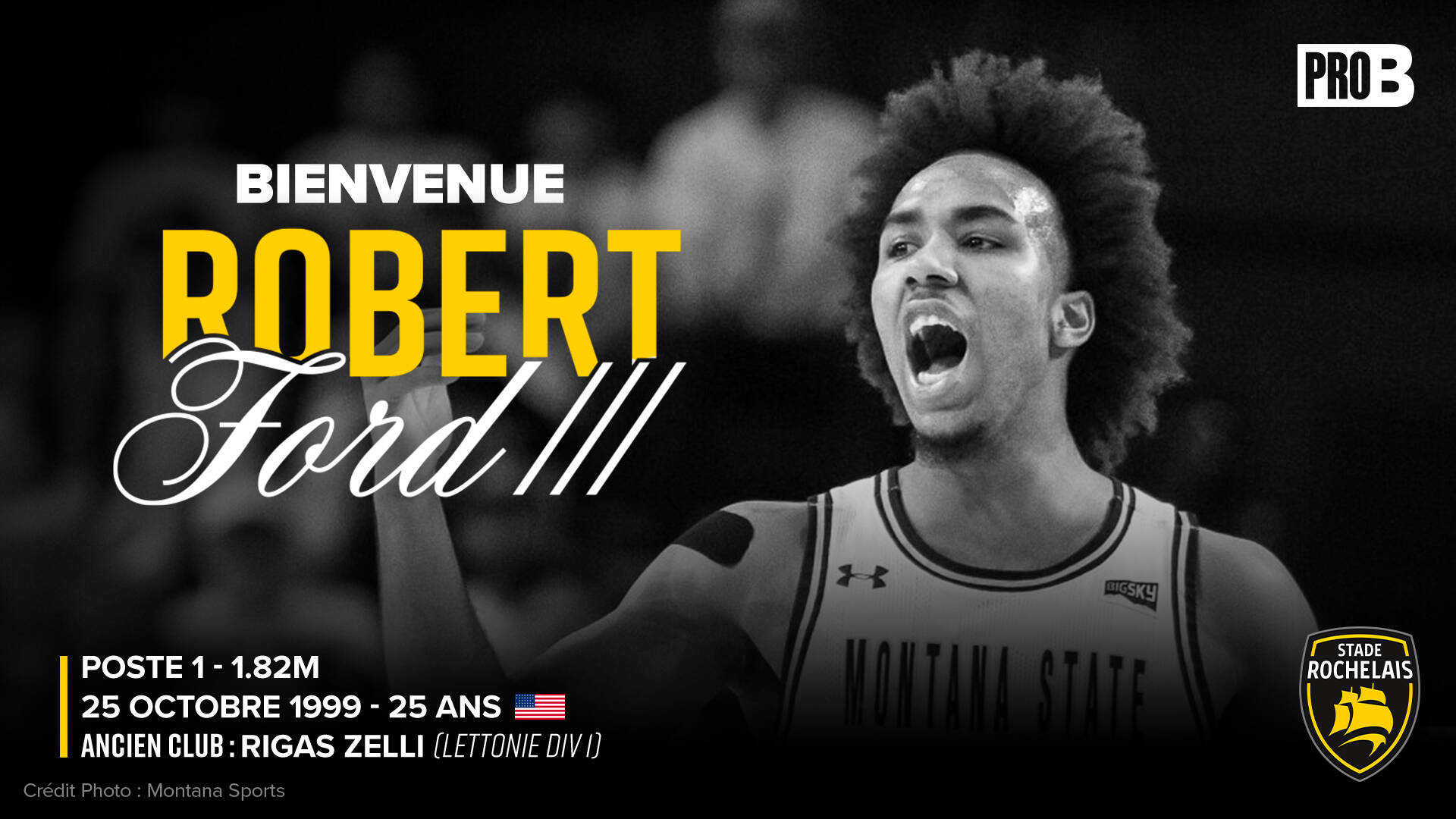 À 25 ans et bientôt 26, Robert Ford III - 1,82m pour 82 kg - est l'un de ces meneurs capables de tout. Né à Portland, il aura fait toute sa formation dans son pays natal. À Clackamas Community College, il a débuté sa carrière universitaire de la meilleure des manières, avec 22,6 points, 10,5 rebonds et 6,2 passes décisives par match. Du solide, ce qui l'a amené en NCAA, d'abord aux Bengals d'Idaho State, où il performe des deux côtés du terrain, avec ses qualités de gestionnaire, de vitesse et de shoot.