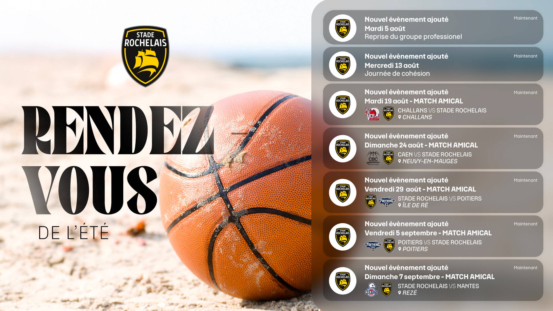 - Stade Rochelais - Poitiers Basket 86 | Le match est décalé au vendredi 29 août à 19h00